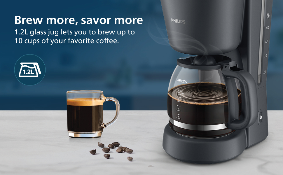 - Compact Design, without compromising capacity - This coffee maker is especially designed for brewing 2 up to 9 cups of coffee (maximum 1.25 liter). Thanks to its very compact design, this coffee maker takes little place in your kitchen