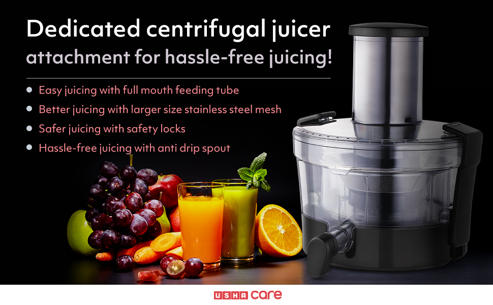 • Both Citrus and Centrifugal Juicing Attachments. Overload protection for motor safety