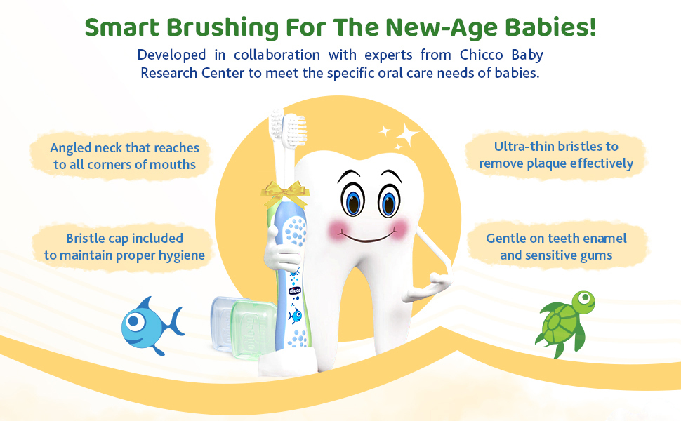 - Bristles are thinner at the top, which provides gentle and effective cleaning by reaching to untouched areas in baby's mouth.