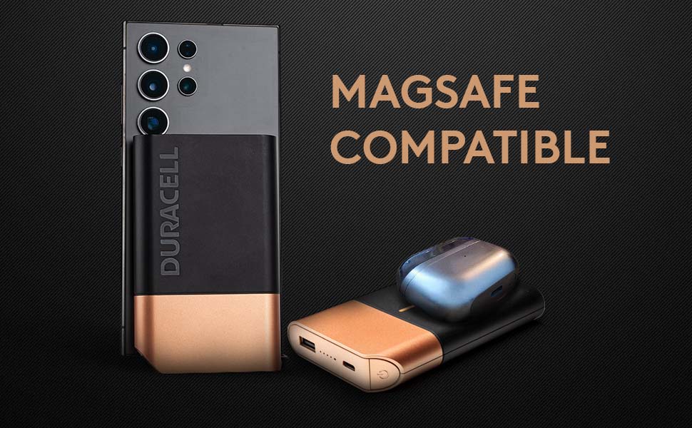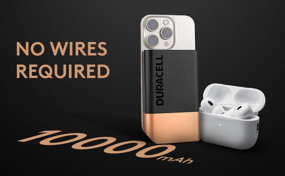 Duracell Magnetic Wireless Power Bank 10000 mAh, Magsafe Compatible, Fast Charging, Compact, 15W Wireless Charging, 22.5W USB A/Type C Output, for iPhone, Smartphones, USB & Qi Enabled Devices, Black