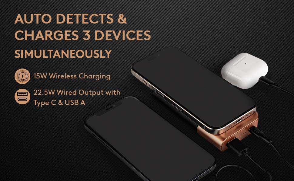 • 15W Magnetic Wireless Charging and 22.5W wired charging through USB A/Type C
