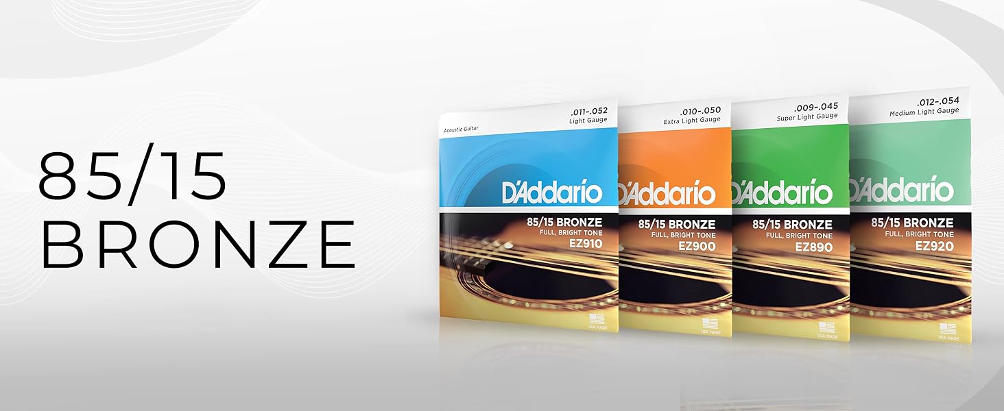 D'Addario Bronze Acoustic Guitar Strings_(.011-.052_Light Gauge)85/15 FULL BRIGHT TONE_Stainless Steel Material, Pack of 1, EZ910 (EZ910)