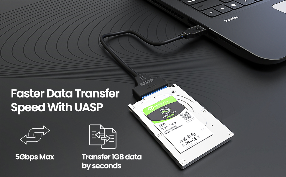 - UASP: With UASP you can utilize the full potential of a SATA III SSD or HDD. sata to usb adapter supports USB 3.0 data transfer speeds of 6Gbps, with 70% faster than conventional USB 3.0, Backward compatible with USB 2.0 / 1.1