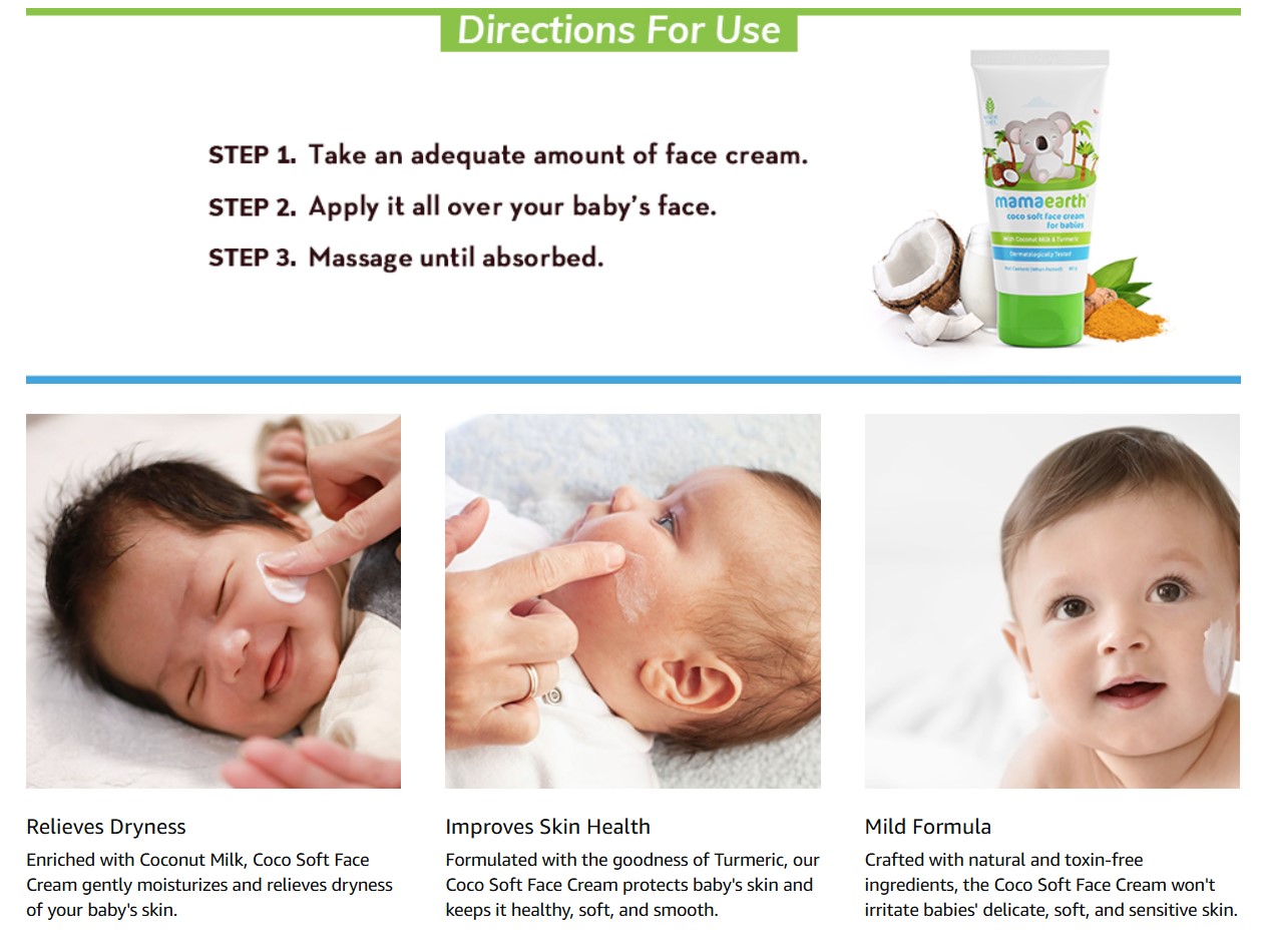 • IMPROVES SKIN HEALTH: Formulated with the goodness of Turmeric, our Coco Soft Face Cream protects baby's skin and keeps it healthy, soft, and smooth.