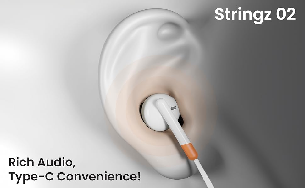 Ambrane Wired Type C in Ear Earphones with in-line Mic for Clear Calling, 1.2M Cable, 14mm Dynamic Drivers for BoostedBass, Multi-Functional Controller for Type C Enabled Mobiles (Stringz 02, Black)