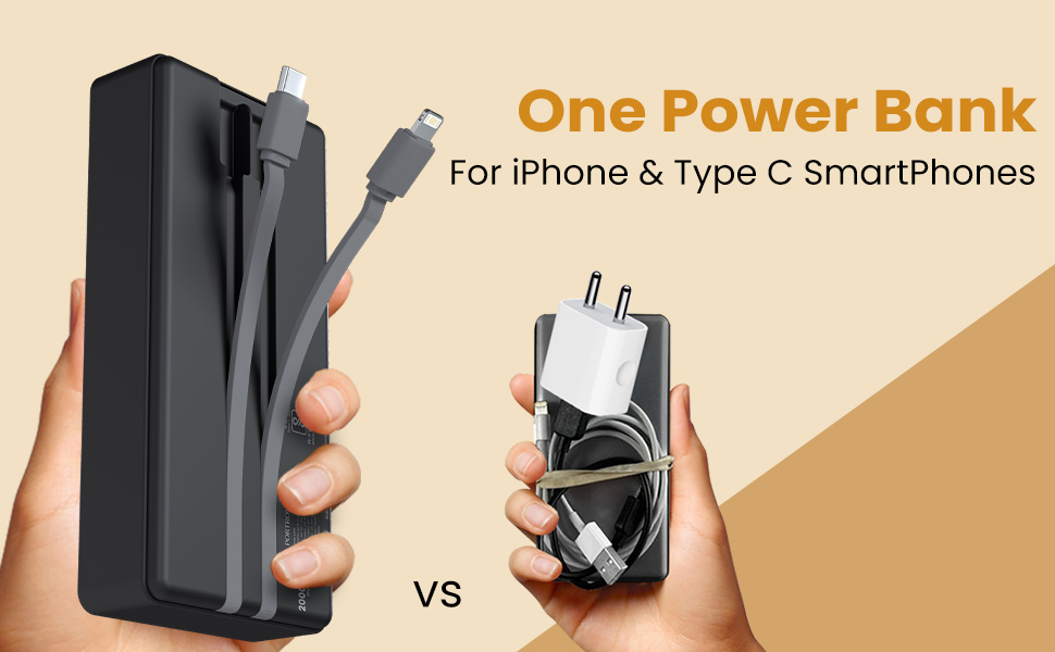 - Cable-Free Charging: Need a power boost on the go? This 22.5W portable power bank packs a punch with a 20,000mAh capacity. Plus, it comes with built-in Type-C and 8-pin cables for convenient charging of your devices.