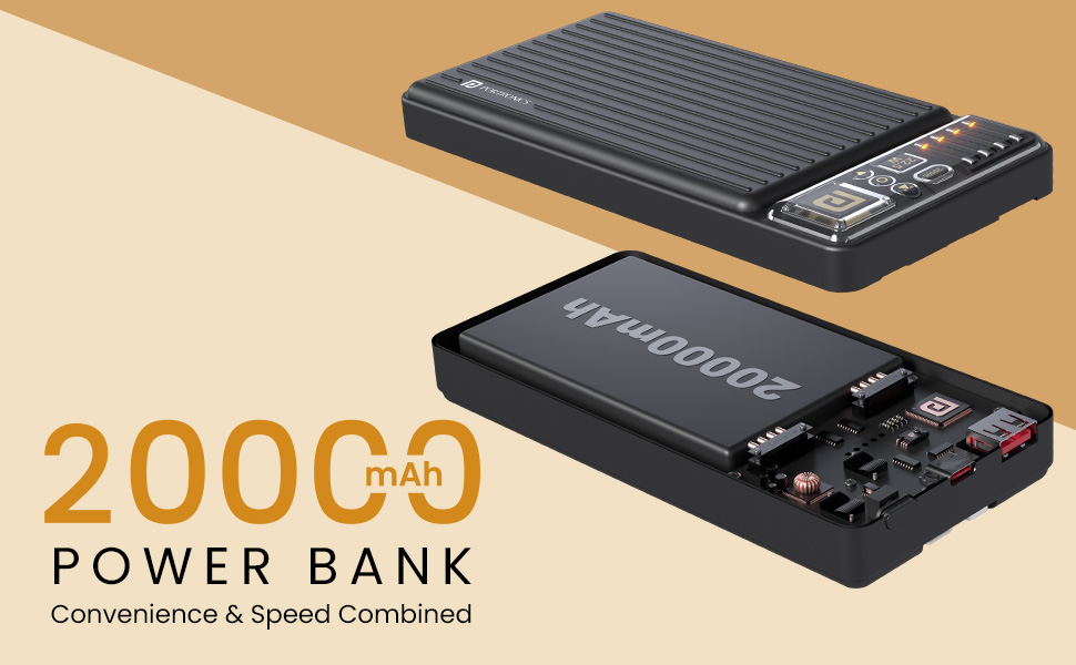 - Charge in Style: : Embrace luxury on-the-go with Portronics. The 20,000 mAh power bank delivers powerful charging in a stunning, lightweight design. Now you can effortlessly top up your devices wherever you are, adding a touch of elegance to your daily routine.