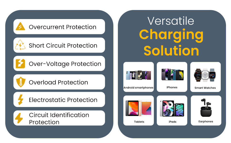 • BIS Certified: BIS certified with advanced chip protection layers, this Made in India power bank ensures your devices are safeguarded against short circuits, over-temperature, and over-voltage issues.