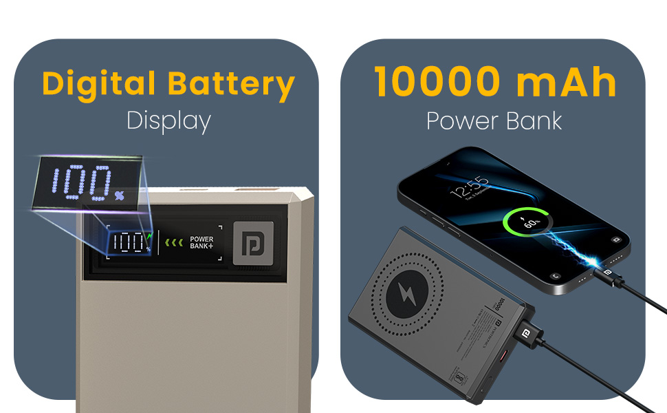 • Real Time Battery Display : This 10000 mAh Fast charging Power bank has a transparent plastic casing with Battery Display, keeping you informed about the power bank and your device’s charge.