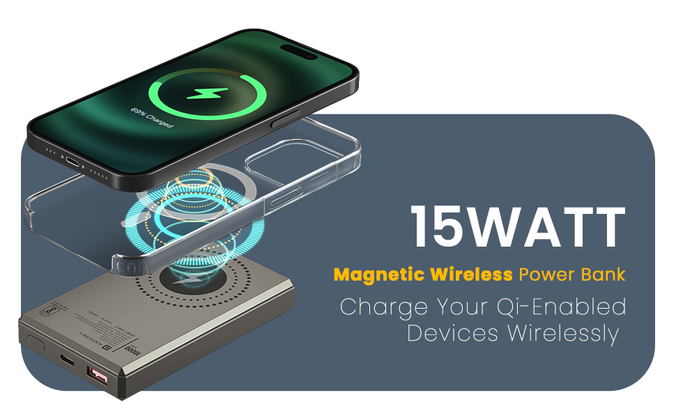 • Smallest Magnetic Wireless Power Bank : Portronics Luxcell Magclick 10K supports 15W Magsafe (wireless) charging for QI-enabled devices (iPhone- 12 and above, Samsung S series etc).