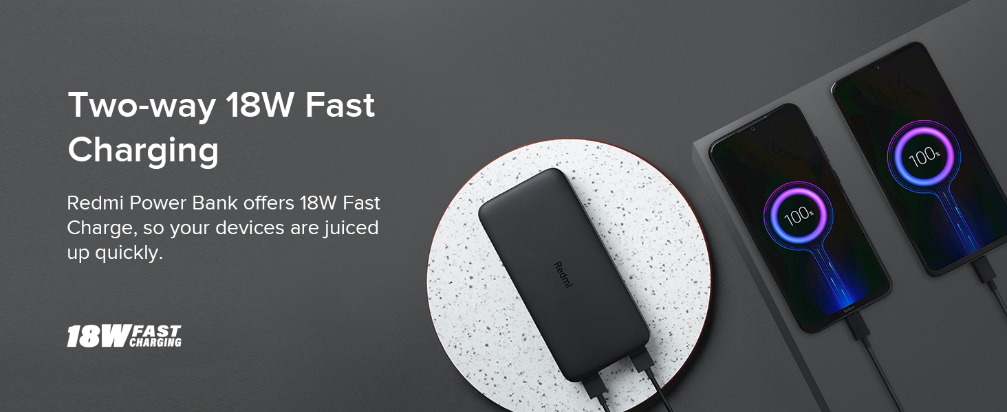 Xiaomi Redmi 20000mAh Li-Polymer Power Bank, USB Type-C Inputand Micro USB Ports, 18W Fast Charging, Low Power Mode, Black