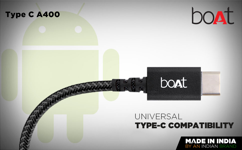 boAt Type-C A400 | Type-C to USB A 2 Mtrs USB Cable| 3A Fast Charging & 480mbps Data Transmission | Compatible for all Smartphones & Tablets (Black), 2M