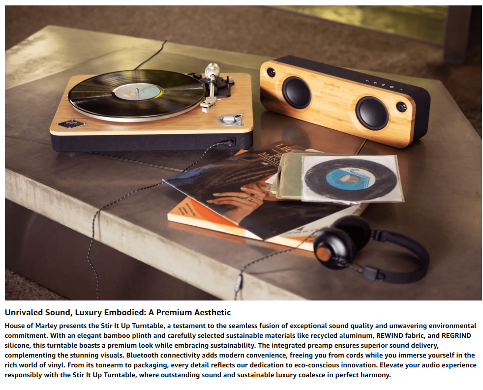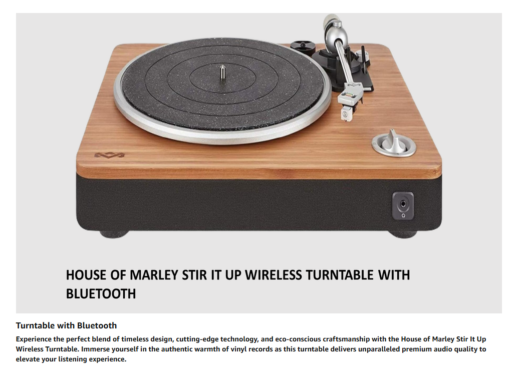House of Marley Stir It Up Wireless Turntable: Vinyl Record Player with Wireless Bluetooth Connectivity, 2 Speed Belt, Built-in Pre-Amp, and Sustainable Materials