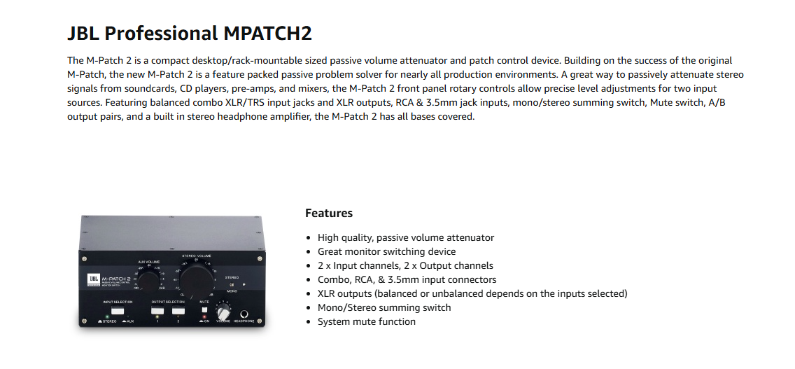 JBL Professional MPATCH2 Multi-Channel Passive Stereo Auxiliary Controller and Switch Box