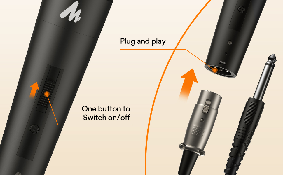 MAONO Dynamic Microphone Wired for Singing, Cordless Karaoke Mic with 9.8FT/3M XLR Cable, with On/Off Switch (AU-WDM01)