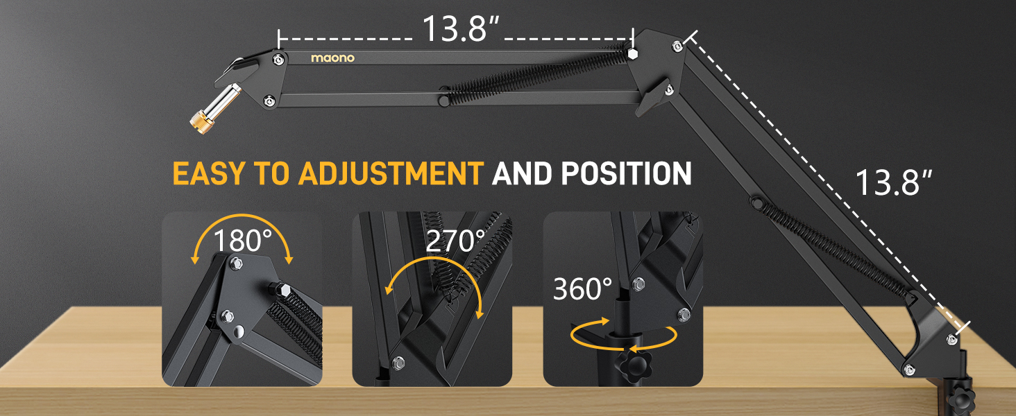 - Dual suspension springs on each boom arm, protects microphone from suddenly dropping