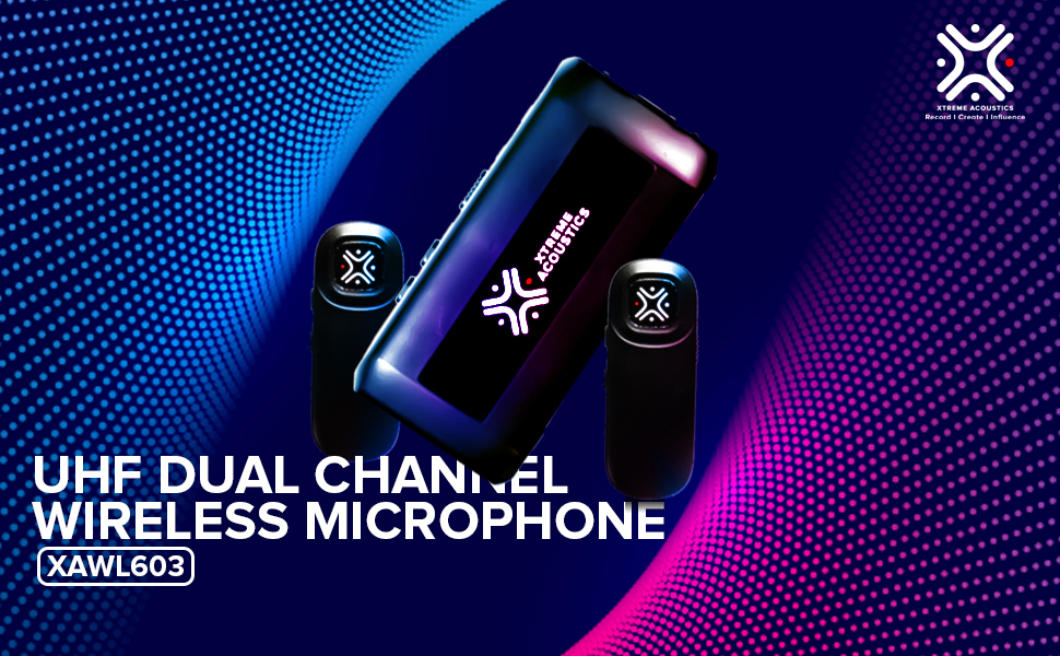 Xtreme Acoustics XAWL603 Wireless UHF Dual Channel Lavalier Microphone with 3.5mm Camera and Mobile Cable for Singing, Audio Video Recording, YouTube