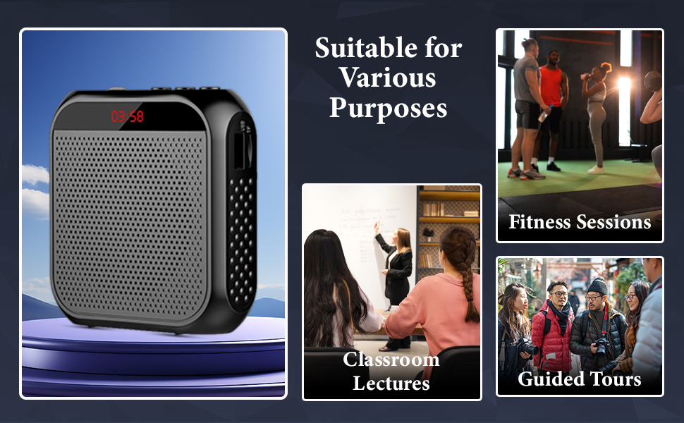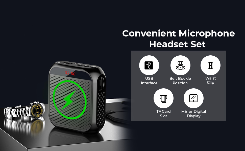 • VOICE AMPLIFIER WITH MICROPHONE: Coming with one headset microphone, it perfects for teacher, trainer, singer, coach, tour guide, shopping mall, presentation, Yoga, outdoor speech and etc. You can use the removable clip on the back to attach it to your belt or pocket, or you can tie it around your waist or hang it around your neck with the help of a belt. Insert the microphone headset into the jack, it become your throat helper for indoor/outdoor speaking. Let you can be heard clearly by people.