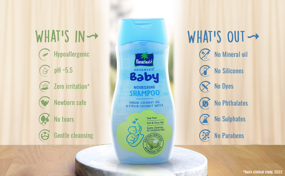 - DOCTOR CERTIFIED NEWBORN SAFE: The Parachute Advansed Baby Shampoo for kids is clinically tested, designed to be irritation free (Basis Clinical Study, 2022) and is certified to be safe for newborns.