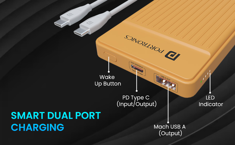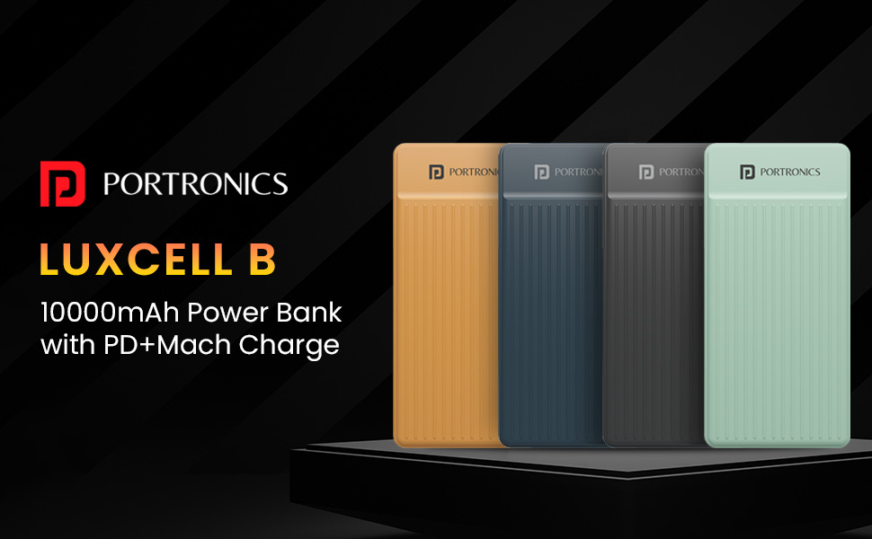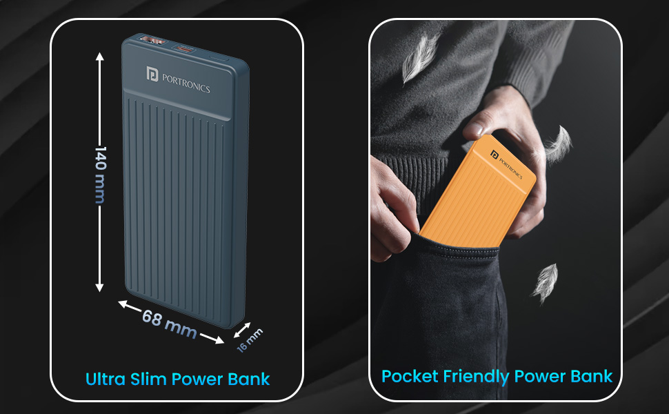 Portronics Luxcell B 10K 10000 mAh 22.5W Fast Charging Power Bank, Ultra Slim Power Bank with Mach USB-A Output, Type C PD Output, Type C Input, Wake Up Button(Dark Blue)