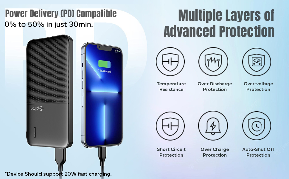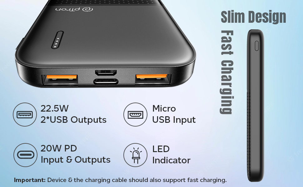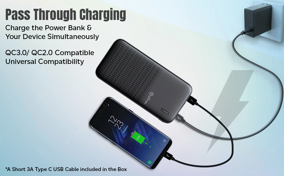 - Power bank supports fast wired charging thru USB (22.5W) & Type-C/PD ports (20W) | Pass Through charging function (power bank charging & device charging simultaneously)