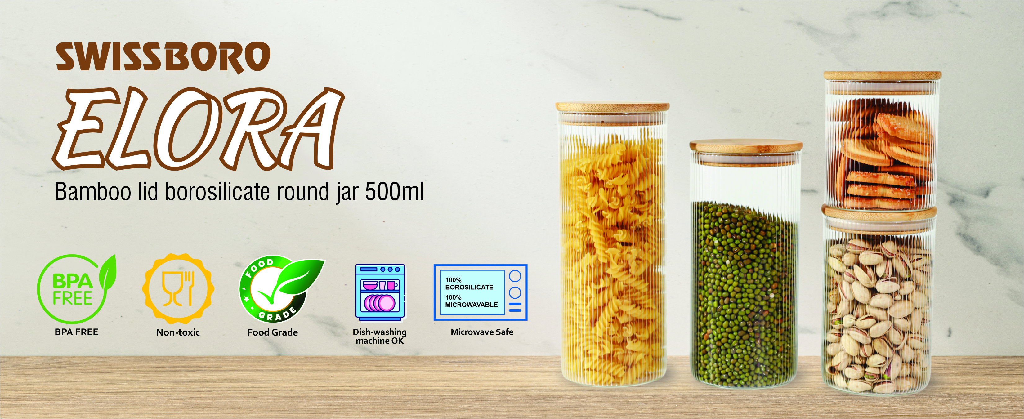 Swissboro Elora Bamboo Lid Borosilicate Glass Round Jar 1 pc- 100ml